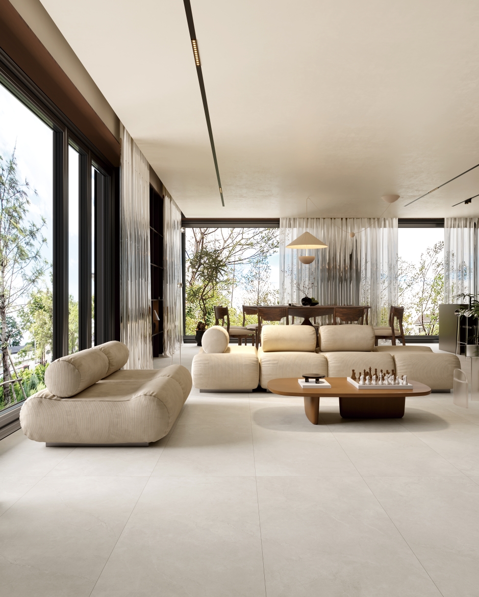 自然純粹的米灰底紋上漂浮著淡淡的銀白色紋理,是時(shí)光賦予的溫柔,表面紋理簡(jiǎn)約、悅目,悠然地展現(xiàn)出米灰的深沉與靜謐,記錄時(shí)光的流轉(zhuǎn),創(chuàng)造出一片獨(dú)特的空間奇跡。
