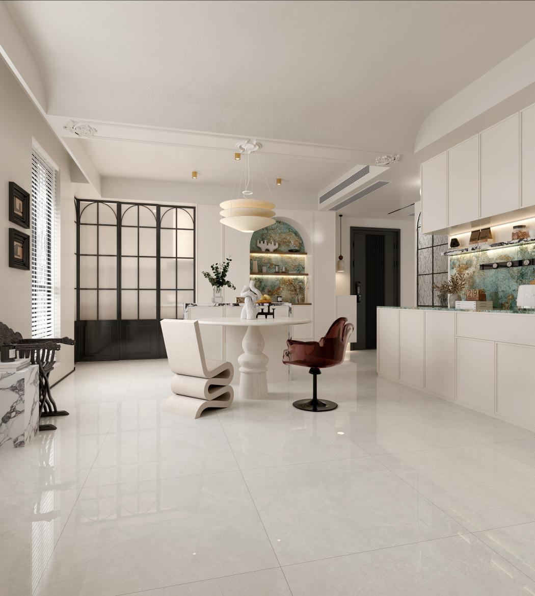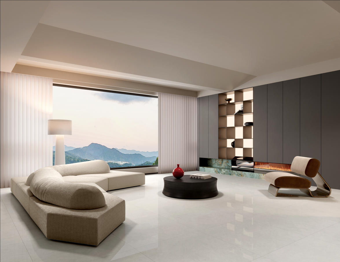 云絮飄動似的微弱紋理,其間淺灰紋理若隱若現(xiàn),又如冬日山林雪徑,簡約雅致,為空間注入清冷高級感,營造寧靜舒適的家居氛圍。