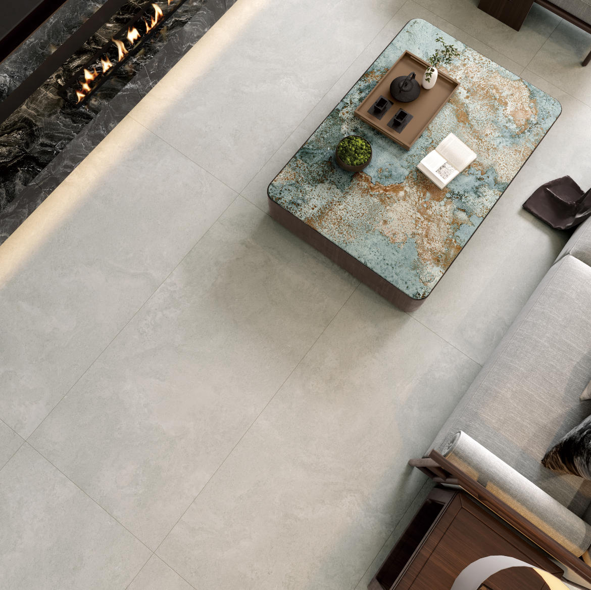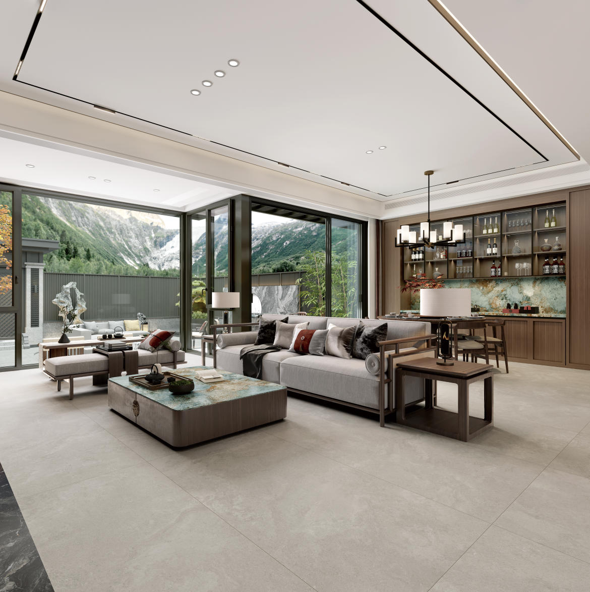 獨(dú)特時(shí)尚的米杏色調(diào),變幻莫測(cè)的漸變紋理流動(dòng),彷如歲月的雕琢,給空間帶來(lái)連貫、完整、延伸的無(wú)垠視界。